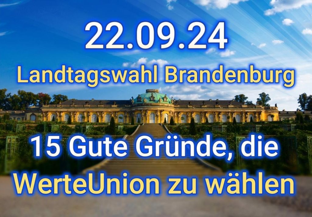 22.09.2024 Landtagswahl Brandenburg – 15 Gute Gründe die WerteUnion zu wählen