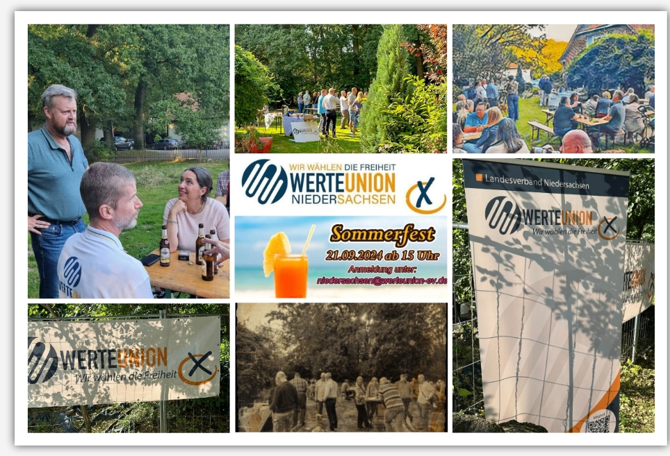 Am 21. September 2024 fand das alljährliche Sommerfest der WerteUnion Niedersachsen im schönen Wildeshausen statt. Bei strahlendem Sonnenschein und angenehmen 22 Grad kamen weit über 50 Mitglieder und Unterstützer zusammen, um gemeinsam einen unvergesslichen Tag zu erleben. Die positive und entspannte Atmosphäre bot den perfekten Rahmen für inspirierende Gespräche und einen regen Austausch über die Zukunft Deutschlands sowie die zentralen Werte, die die WerteUnion ausmachen.