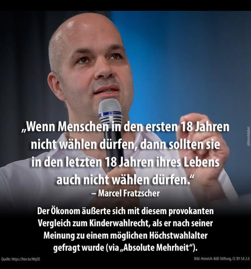 Die Aussage von Marcel Fratzscher ist demokratiepolitisch hochproblematisch. Indem er älteren Menschen pauschal die volle politische Urteilskraft abspricht, stellt er das allgemeine Wahlrecht infrage und ersetzt Gleichheit durch ein elitär-technokratisches Bewertungsmodell. Das ist keine Analyse, sondern Altersdiskriminierung mit moralischem Überlegenheitsgestus.